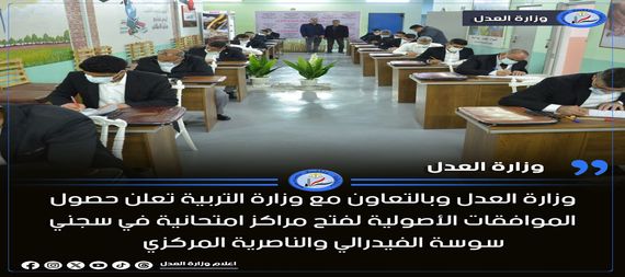 أعلنت وزارة العدل، حصولها بالتعاون مع وزارة التربية على جميع الموافقات الرسمية والأصولية لافتتاح مراكز امتحانية للمستويات الدراسية المختلفة داخل سجني سوسة الاتحادي والناصرية المركزي.