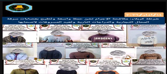وذكر بيان للشرطة:" انه في إطار الجهود المتواصلة لتعزيز الأمن والاستقرار وملاحقة الخارجين عن القانون، نفذت مفارز قسم مكافحة الإجرام حملة أمنية واسعة في عدد من مناطق المحافظة، استهدفت عصابات السرقة والمتهمين بسرقة المحال التجارية والدراجات النارية".