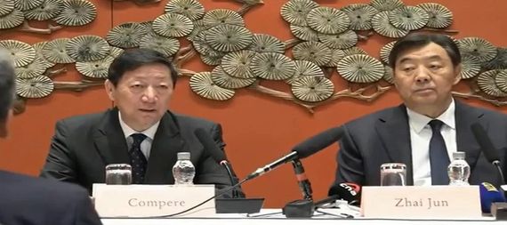 وقال تشاي جيون مبعوث الحكومة الصينية الخاص لشؤون الشرق الأوسط، في مؤتمر صحفي عقب اختتام زيارته إلى الشرق الأوسط، إن الصين تدعو المجتمع الدولي إلى التمسك بالسلام، وتعزيز محادثات السلام على نحو نشط، والدفع نحو العودة إلى السبل الدبلوماسية في حل النزاعات".