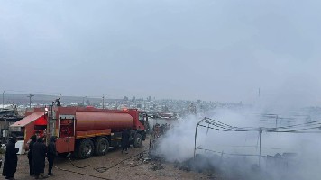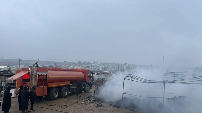 حريق ضخم يلتهم أكثر من 20 محلاً تجارياً بسوق داخل مخيم للنازحين في إقليم كوردستان