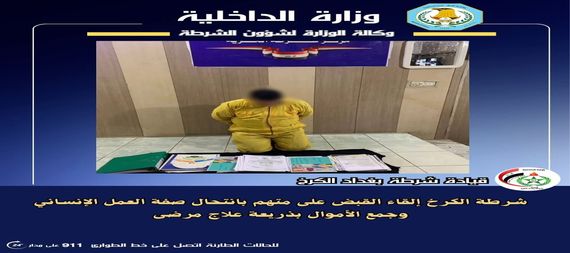 القت قوات قيادة شرطة الكرخ ، القبض على متهم بانتحال صفة العمل الانساني وجمع الاموال بذريعة علاج مرضى.
