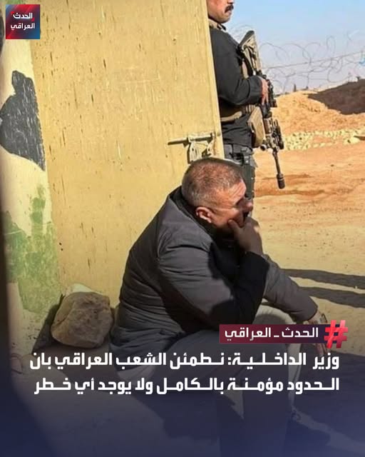 أكد وزير الداخلية عبد الأمير الشمري، أن الحدود مؤمنة بالكامل ولا يوجد أي خطر. وقال الشمري من الشريط الحدودي مع سوريا في تصريح تابعته وكالة الانباء العراقية المستقلة "نطمئن الشعب العراقي بان الحدود مؤمنة بالكامل ولا يوجد أي خطر". |
