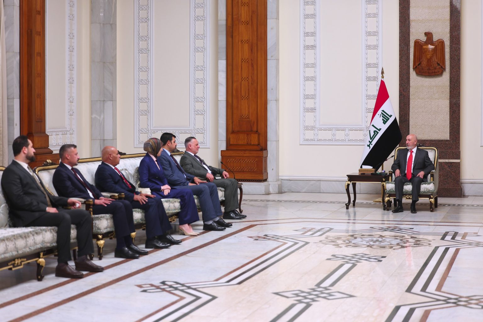 وكالة الأنباء العراقية المستقلة بغداد ,, آميدي يؤكد لوفد القانونية النيابية أهمية توسيع التعاون بين رئاسة الجمهورية والسلطة التشريعية وتعزيز التنسيق بين المؤسسات الدستورية استقبل فخامة رئيس الجمهورية السيد نزار ئاميدي، اليوم الخميس 23 نيسان 2026 في قصر بغداد، وفد اللجنة القانونية النيابية برئاسة السيد بهاء الأعرجي، حيث قدم أعضاء الوفد التهاني لفخامته بمناسبة تسنمه منصب رئيس الجمهورية، متمنين له التوفيق في أداء مهامه الوطنية وخدمة الشعب. وجرى خلال اللقاء، بحث عدد من الملفات القانونية والتشريعية المهمة، حيث أكد السيد الرئيس أهمية توسيع أطر التعاون بين رئاسة الجمهورية والسلطة التشريعية وضرورة تعضيد التنسيق المشترك بين المؤسسات الدستورية لدعم الاستقرار السياسي وترسيخ سيادة القانون بما يسهم في تحقيق الإصلاحات المطلوبة وتطوير المنظومة القانونية في البلاد. من جانبهم، عبّر أعضاء وفد اللجنة القانونية عن تثمينهم لجهود رئيس الجمهورية في دعم المسار الديمقراطي، مؤكدين حرصهم على تطوير الأداء التشريعي وسعيهم لتفعيل القوانين التي تخدم وتحقق المصلحة العامة. |